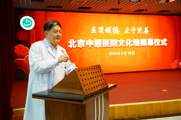 国医大师柴嵩岩、全国名中医陈彤云、首都国医名师郁仁存、李乾构、张炳厚、黄丽娟以及院领导和中层干部、党员代表、职工代表、团员代表等200余人共同见证了文化墙揭幕。仪式由党委副书记程军主持。