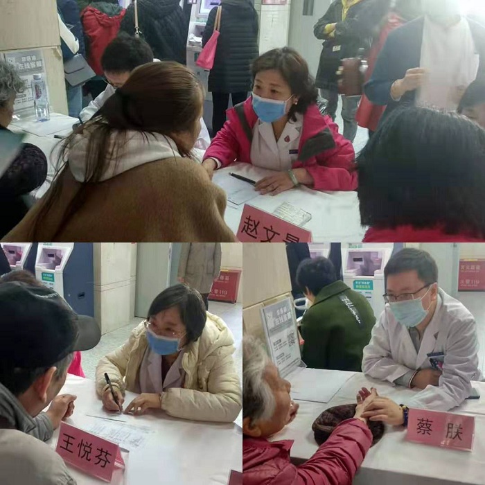 肾脏日当天上午,肾病科在门诊一层大厅举办了专家义诊与健康咨询活动。义诊活动由肾病科主任赵文景亲自带队,包括主任医师王悦芬、副主任医师蔡朕等,为患者答疑解惑、把脉问诊、现场开方、指导用药并讲解肾脏相关知识。李倩护士长带领护理团队为大家测量血压、贴耳豆,发放健康宣传材料。