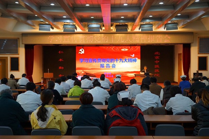 11月15日,北京中医医院党委在院多功能厅举办学习宣传贯彻党的十九大精神报告会,北京市卫生计生委党委委员、市中医管理局局长屠志涛作十九大精神宣讲。院党委班子成员、全体中层干部、党员代表共计100余人到会学习。