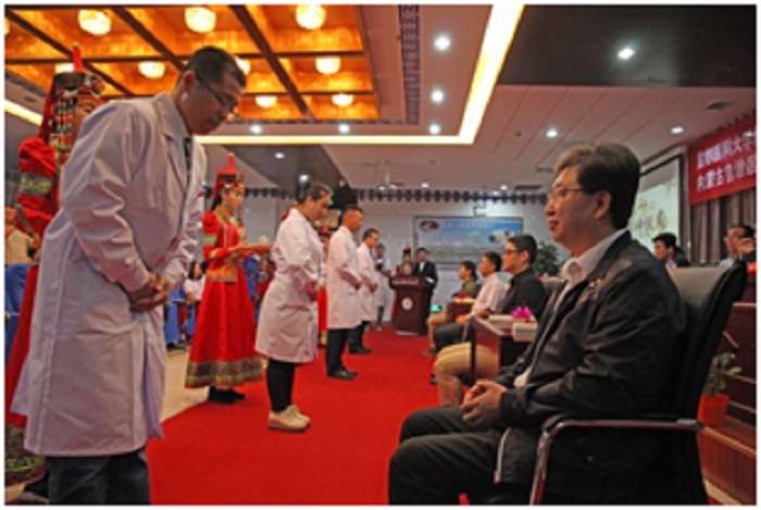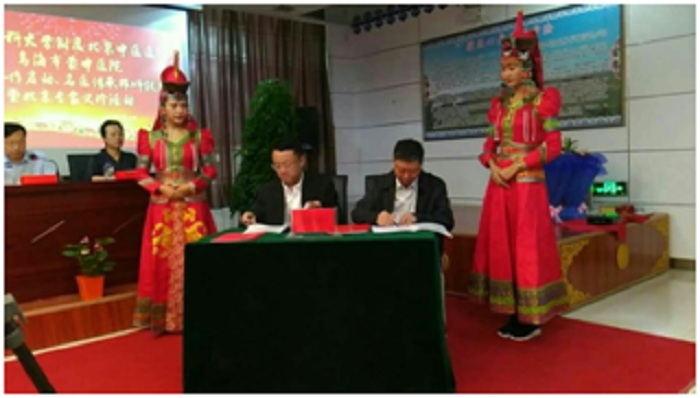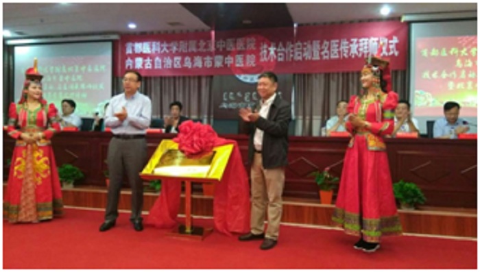 在启动仪式上,刘东国副院长代表北京中医医院先后与乌海市蒙中医院、乌海市海勃湾区中医院签署了技术合作协议,并为两家技术协作医院揭牌。根据技术合作协议,北京中医医院将在重点专科建设、中医人才队伍培养、医院管理帮扶等三个方面与技术合作医院开展帮扶与协作。将依托北京中医医院国家临床重点专科帮扶2所医院5-6个专科达到区域先进水平;通过中医“师带徒”、骨干人员进修等形式开展人才培养;通过管理干部轮岗、开展管理培训等方式将现代医院管理理念与管理制度向合作医院推广。