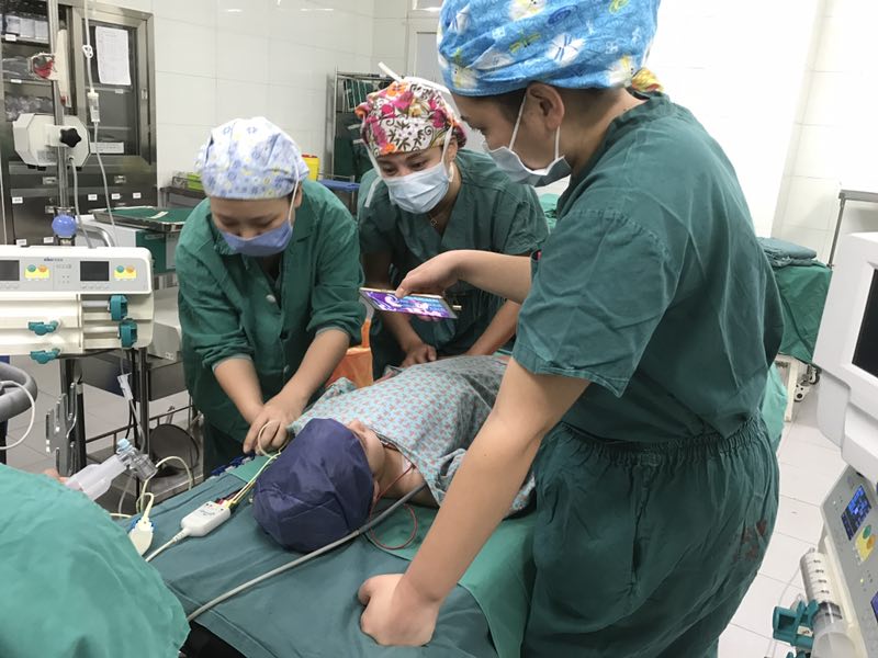 为了减轻孩子的恐惧心理,尽量地安抚孩子,本来应该由一位巡回护士就可以完成的术前工作,大家纷纷进来帮忙,配合麻醉、手术、安抚孩子,用手机给孩子播放动画片,跟孩子聊天,夸她真乖真勇敢......直至麻醉插完管,孩子都特别配合,一直由各位阿姨陪着各种开心的笑,连输液扎针都很配合,没有害怕喊痛。
