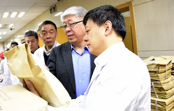方来英主书记一行来到门诊大厅,先后视察了医改政策咨询台、综合服务窗口、收费窗口、取药窗口、自助机,以及中药调剂室、中草药文化园等,所到之处与医务人员、患者交流,了解情况。