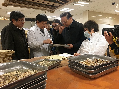 随后,王国强一行来到门诊中药饮片调剂室,看望工作在一线的药师们,他详细询问中药调剂的工作情况,同时强调了准确调剂、严格复核的重要性。在病房煎药室,王国强一行观看了“小锅煎药”的过程。当得知一位煎药师同时负责8个煎药锅,一天煎煮近五百锅汤药时,他说:“煎药室常年高温高湿,工作费时费力,但这项工作很重要。煎药质量是保证疗效的最后一关,一定要把握好。大家辛苦了!”