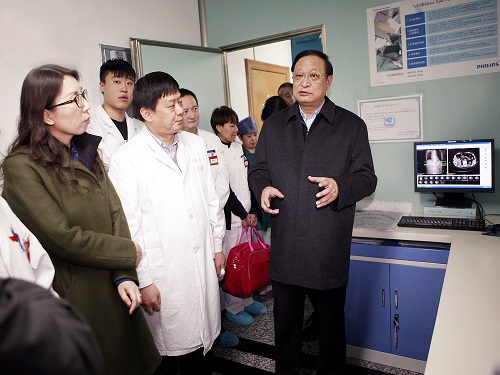 最后,王国强一行来到急诊科,看到医护人员紧张忙碌的身影,王国强说:“我代表国家卫生计生委、国家中医药管理局来看望大家,对大家一年来辛勤的工作表示慰问。医护人员十分辛苦,大家在紧张忙碌的工作中,在保证医疗质量的同时,还在不断创新,医院还在向前发展。新一年里,希望大家继续努力。去年年底,全国人大通过了中医药法,我们的国医有了国法做保障,会得到更大的发展,希望大家努力工作,为我们的中医药事业做贡献。”