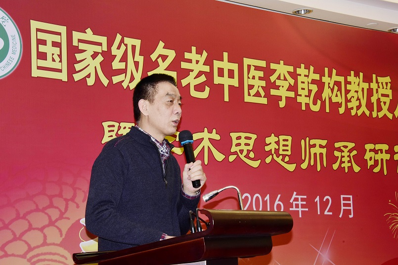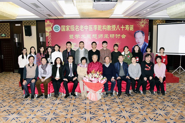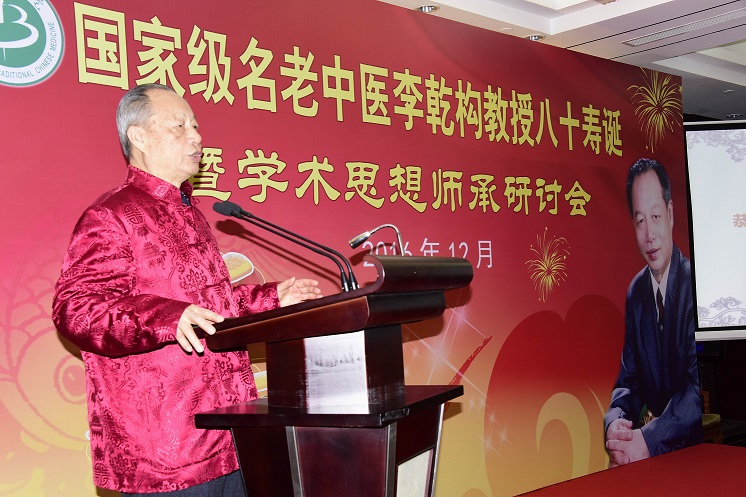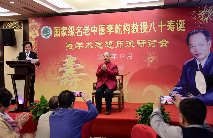 12月3日,国家级名老中医李乾构教授学术思想师承研讨会在北京和敬公主府召开。北京中医医院党委书记信彬、副院长徐春军、刘东国及李老高徒等80余人参加。研讨会由李老徒弟汪红兵副教授主持。会上,信彬书记高度评价李乾构老教授的医术、医德、治学态度及对中医传承、中医药事业做出的杰出贡献。李老回顾了自己的成长历程及与中医结缘、为中医药事业奋斗、努力的过程,简单叙述了自己的临证经验与同道、后辈共勉。李老高徒代表广安门中医院消化内科周斌教授、北京中医医院脾胃病科主任医师唐博祥、刘汶、副主任医师朱培一、主治医师李帷分别介绍了李老的学术思想。