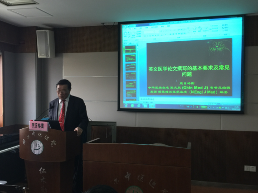 照日格图教授以发表在NEJM上的论文为例,分述了《从医学临床研究设计角度解析PEGASUS-TIMI 54研究的亮点》、《从医学论文写作角度审视解读“EGFR抑制剂耐药的非小细胞肺癌的相关药物研究”的亮点》两个内容。他深入浅出地解析了英文医学论文撰写的基本要求及常见问题,强调高水平科研论文发表的关键是选题和设计,同时列举了近几年中医内容在国际高影响力期刊上刊出的示例,鼓励大家将现代医学、循证医学紧密结合,开展高质量的临床研究,发表高水平学术论文。现场进行了互动交流。