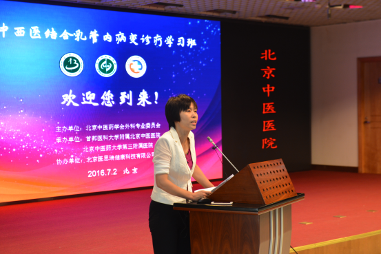 7月2日,北京中医药学会外科专业委员会主办,北京中医医院、北京中医药大学第三附属医院承办的中西医结合乳管内病变诊疗学习班于在北京中医医院举办。来自全国各地的300余名专家学者共聚一堂,就乳腺导管内肿瘤、浆细胞性乳腺炎、肉芽肿性乳腺炎、哺乳期乳腺炎、乳腺囊肿、乳腺脓肿等乳管内病变的诊断、治疗进行交流。学习班设理论授课、圆桌论坛、病例讨论、手术及外科技法演示四个环节。开幕式由北京中医药学会外科专业委员会张董晓秘书长主持,北京中医医院院长刘清泉、北京市中医管理局科教处处长厉将斌分别讲话。