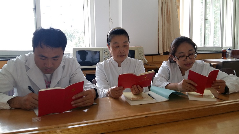期间,还播放了两段小视频,身边优秀党员的楷模——我院心身医学科张捷主任和儿童医院超声科贾立群同志的典型事迹宣传片,支部号召大家向先进典型学习,向榜样借鉴,学习他们的思想境界、精神气质、行为举止。 (医技党支部)