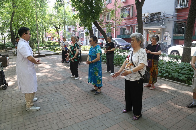 和平里社区有6000多住户,70%都是老年人。根据这一特点,支部确定10项活动内容,包括:健康咨询、测血糖、测血压、耳穴埋籽、按摩、发放健康调查问卷、发放健康材料、健康讲座、宣传非急诊预约流程、教老人做八段锦等,为此做了大量准备工作。