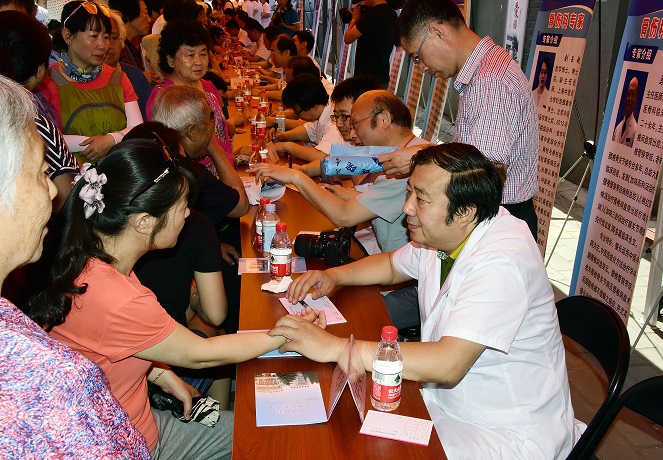 为进一步加强城乡对口支援工作,深化基层中医药服务能力提升工程,践行“两学一做”,庆祝建党95周年,切实缓解人民群众看病就医难的问题,北京中医医院副院长王大仟带领市委组织部历年“京郊人才行”脾胃病科专家翟兴红、妇科专家朱梅、呼吸科专家陈明、周继朴及骨科、肾病科、皮科等10余名知名专家为滨湖社区群众观舌把脉,解疑答惑并开展诊疗服务。怀柔区卫计委主任高永革也到现场助阵,为群众发放常见病防治知识宣传材料。