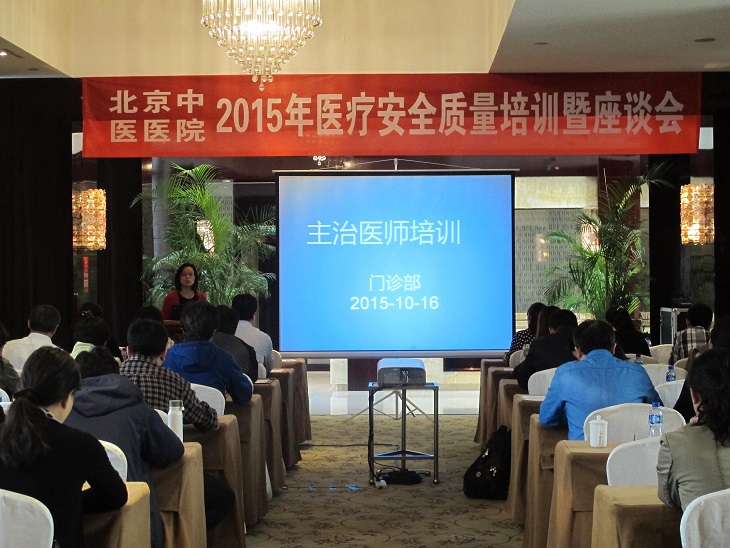 10月16日,我院医务处举办2015年度执行主治医师、医疗助理及院级质控员培训暨座谈会。会上,门诊部副主任唐武军、护理部主任郝丽及质控办主任宣雅波分别就门诊医疗质量与安全、医护配合保障医疗安全及执行主治医师职责等方面进行了培训。风湿病科执行主治医师邵培培就如何做好执行主治医师日常管理工作介绍了经验;呼吸科主任王玉光结合科室特点及科室发展目标介绍了呼吸科日常科室管理。
