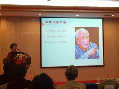 中华中医药学会肝胆病分会的前身是中华中医药学会内科(肝胆病)分会,成立于1984年秋,在主任委员钱英教授的带领下,不懈努力,为推动中医肝病的发展做出巨大贡献,钱英教授在回顾学会发展历程时动情地说“我们不会忘记和永远怀念已经故去的、为学会建设发展、学术进步作出巨大贡献的关幼波、陈增潭、孟宪益、胡肇椿等专家学者,表示我们深深的怀念和崇高的敬意 ” 。“国医泰斗,一代明医”关幼波教授作为当代中医肝胆病的先驱、北京中医医院肝病科的创始人之一,他的“十纲辨证”、“痰瘀理论”、“治黄学说”等学术成果丰富了中医治肝理论,其强大的生命力至今仍指导着后学,“儒是达儒,医是明医”的座右铭激励着我院一代又一代中医人“ 以岐黄济世,以仁爱救人 ”。在随后的学术报告中,众多讲者一遍又一遍提到了关幼波、陈增潭等学者的学术思想对临床的指导价值。
