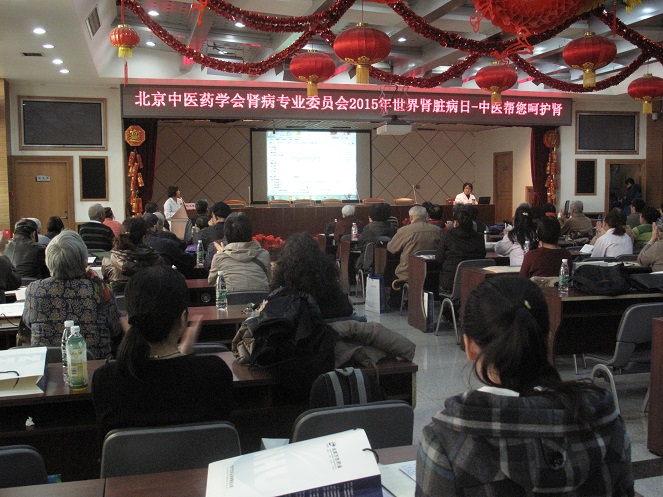 3月12日下午,北京中医药学会肾病专业委员会主办,我院肾病科承办的“2015年世界肾脏病日——中医帮您呵护肾”大型健康宣教活动在多功能厅举行。活动前通过平面媒体、网络媒体等宣传方式,吸引了社会各层对肾病知识感兴趣的市民前来参与。主任医师张胜容、赵文景、常峥、副主任医师刘宝利针对慢性肾脏病患者在疾病诊治过程中所关心的几大问题,进行了重点讲解。内容包括慢性肾脏病患者的饮食调摄、血压管理、血糖管理、泌尿系感染的中医治疗与调护。活动现场,互动热烈,四位专家耐心解答市民提出的各种疑问。此次活动中,宣讲内容通俗易懂,针对性强,市民参与度、积极性高,会场座无虚席,防治肾病知识在市民中得到了更好的普及和推广。