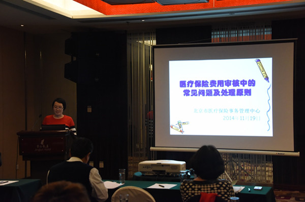 11月19日,我院在京伦大厦举办2014年医保工作会暨医保专管员培训会。副院长刘东国、相关处室领导、各临床科室医疗助理、医保专管员、执行主治医师等人员与会。会上,刘副院长介绍了我院医疗工作情况,强调了医保工作的重要性。北京市医保中心经办机构管理部张凡老师讲了《医疗保险费用审核中常见的问题及处理原则》,并同东城区医保中心郑继春副主任一道,与大家进行互动交流。医保办公室主任彭伟汇报了2014年医保工作;通报了北京市医保中心定点医疗机构管理部来我院专项检查的情况,根据检查中发现的问题提出了整改建议;针对医保专管员提出的问题做了解答和沟通。