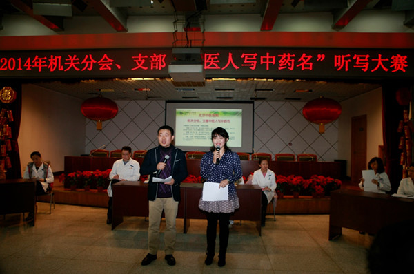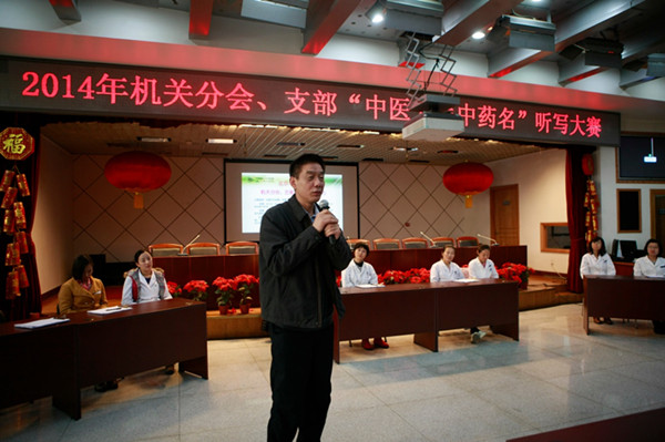 11月18日,机关支部、机关分会联合举办的中医人写中药名听写大赛在多功能举行。院党委书记信彬、副院长王大仟、徐春军、刘东国莅临。信彬书记肯定了该活动有利于提高职工文化素养,弘扬中医文化。