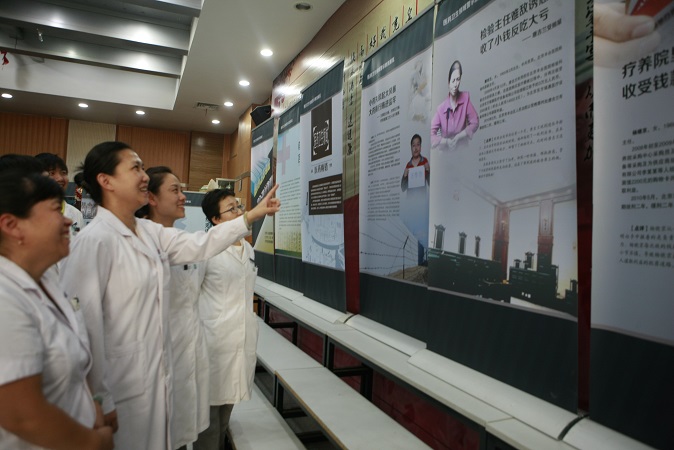 这次警示教育巡回展,是北京市人民检察院根据当前医药卫生领域贪污受贿、渎职等职务犯罪情况,立足于全市查办的案件,从中精心挑选出30个典型案件,专题设计制作。展览分别从医药购销、医药管理、财务管理、工程建设、新农合、涉密信息泄露、药品保管七个环节揭示医药卫生领域在体制机制上存在的漏洞,并提出了相应的对策和建议。展览中一个个腐败的案件、一个个沉痛的教训、一个个熟悉的同仁倒下,令人痛心、催人警醒。大家表示在今后的工作中要常怀律已之心、常思贪欲之害,自重、自省、自警、自励,筑牢拒腐防变的思想道德防线,明明白白行医、堂堂正正做人,为推动医院的改革发展贡献自己的一份力量。 (纪检办)