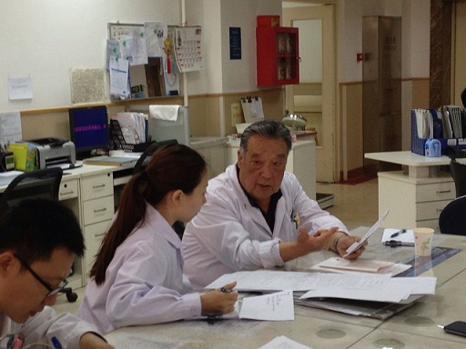 干部保健科的病患群体多是慢性共病的老年人,中医药治疗一向是科室的诊疗特长,科室特邀张老针对老年衰弱伴有发热、老年认知障碍和一例急性高热病例进行查房。张老详尽地展示了四诊技术、辨证分析和具体组方。通过这种近距离的言传身教,非常直观地展示了老专家临床经验和思辩过程,对于后学的教益影响至远。 (干部保健科)
