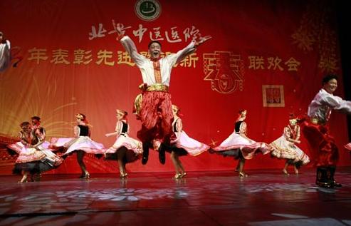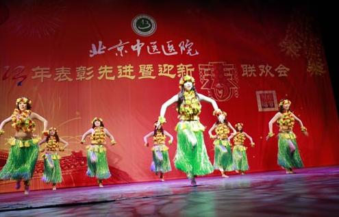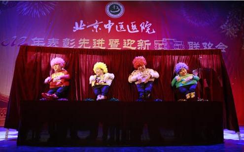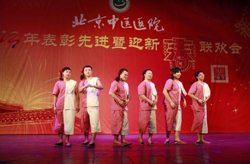 随后举行的迎新春联欢会精彩纷呈,工会各分会精心准备的节目形式新颖,内容丰富,赢得观众阵阵掌声和笑声。院党委非常重视这次活动,给予全方位的支持,近一个多月来,党委副书记江宏才牵头,成立了一支由多部门组成的策划团队,多次开会、反复研究、多次修改,确定节目内容、形式、顺序等。各分会主席和节目负责人组织演职人员利用班后、周末等业余时间进行排练。党委书记信彬、副书记江宏才带头参演,同样利用休息时间参加集体排练和专门辅导,他们的精彩演技得到职工的阵阵喝彩。迎新春联欢会受到职工的交口称赞,被誉为“北京中医医院的春晚”。