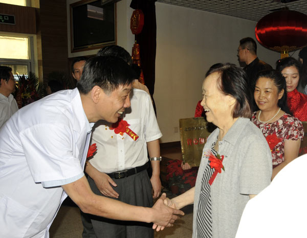 党委书记信彬与国家级名老中医许心如亲切握手,
