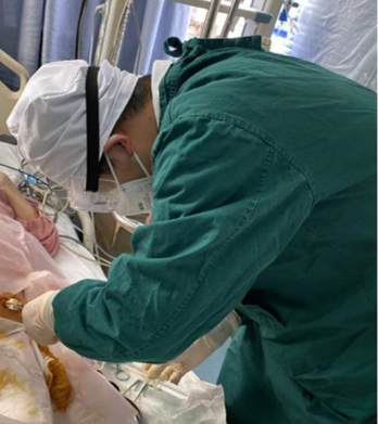朱向刚主治医师加班为危重患者测中心静脉压。