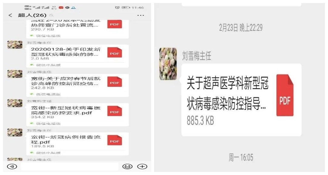 超声科作为临床工作的“第三只眼”不惧风险,坚守岗位。完成门急诊超声检查的同时,医护人员克服困难,开展床旁检查。危重患者做床旁检查时,由于体位受限,无法配合,超声科医生为准确测量数据,蹲在床旁长达10余分钟,受到患者和临床医生好评。