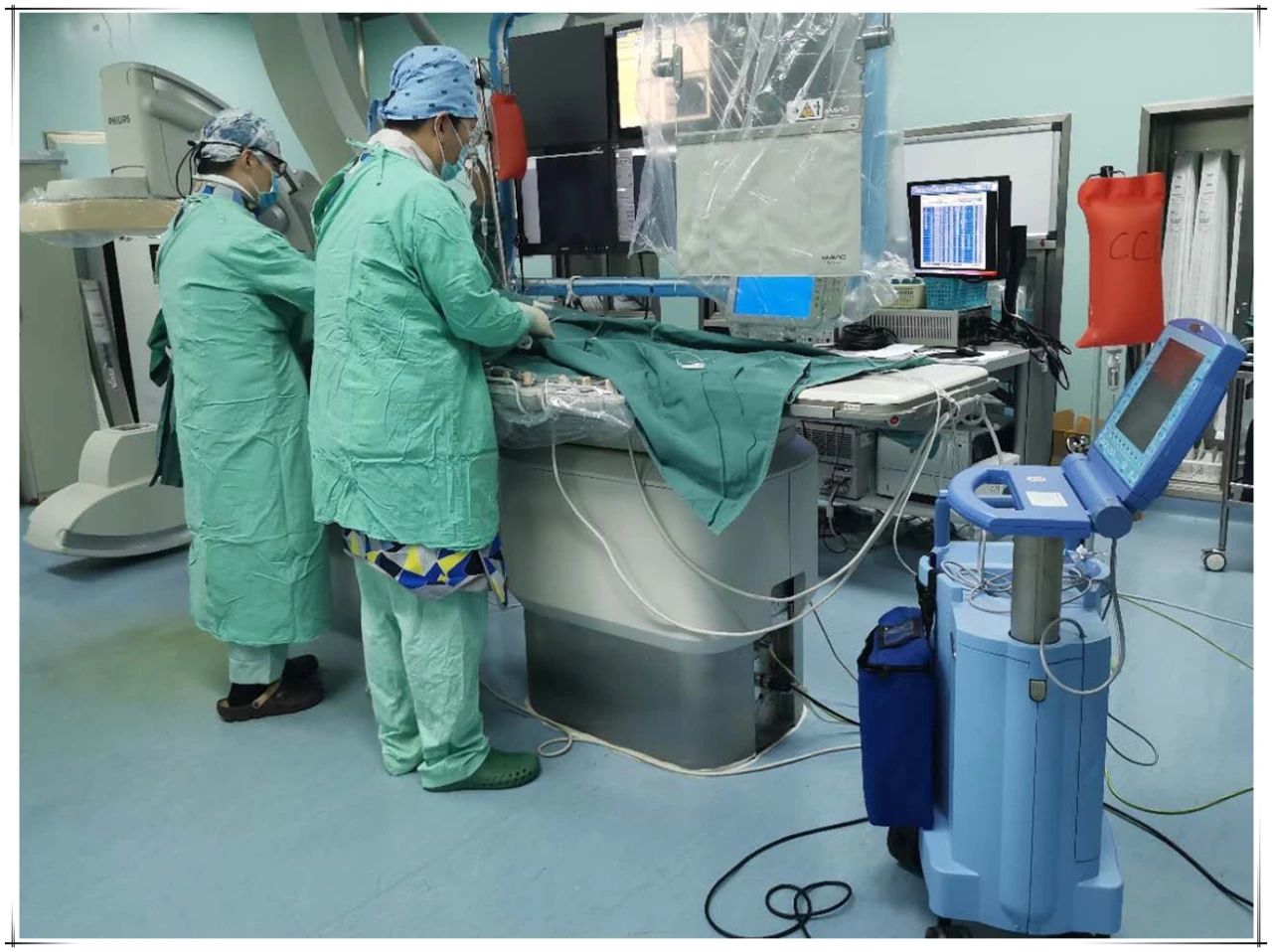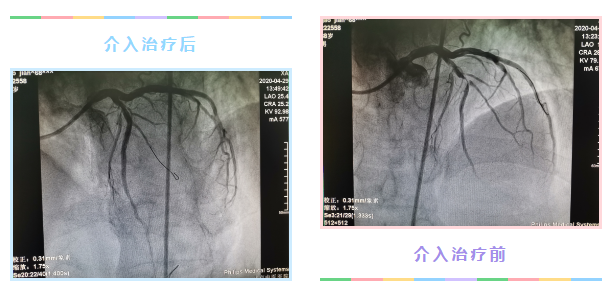 1个多月前,68岁的高大爷突发胸闷、胸痛来我院就诊,心电图提示胸壁导联弓背抬高,心肌酶阳性,诊断为“急性前壁心肌梗死”。胸痛中心立即启动,为高大爷行冠脉造影术,术中发现其前降支血管急性血栓形成,同时右冠状动脉病变也很重。如不能及时开通闭塞血管,高大爷随时会猝死,或发生大面积心肌坏死,导致恶性心力衰竭、恶性心律失常等。时间就是生命,心血管科主任刘红旭和副主任医师周琦立即决定为其实施冠脉介入治疗。