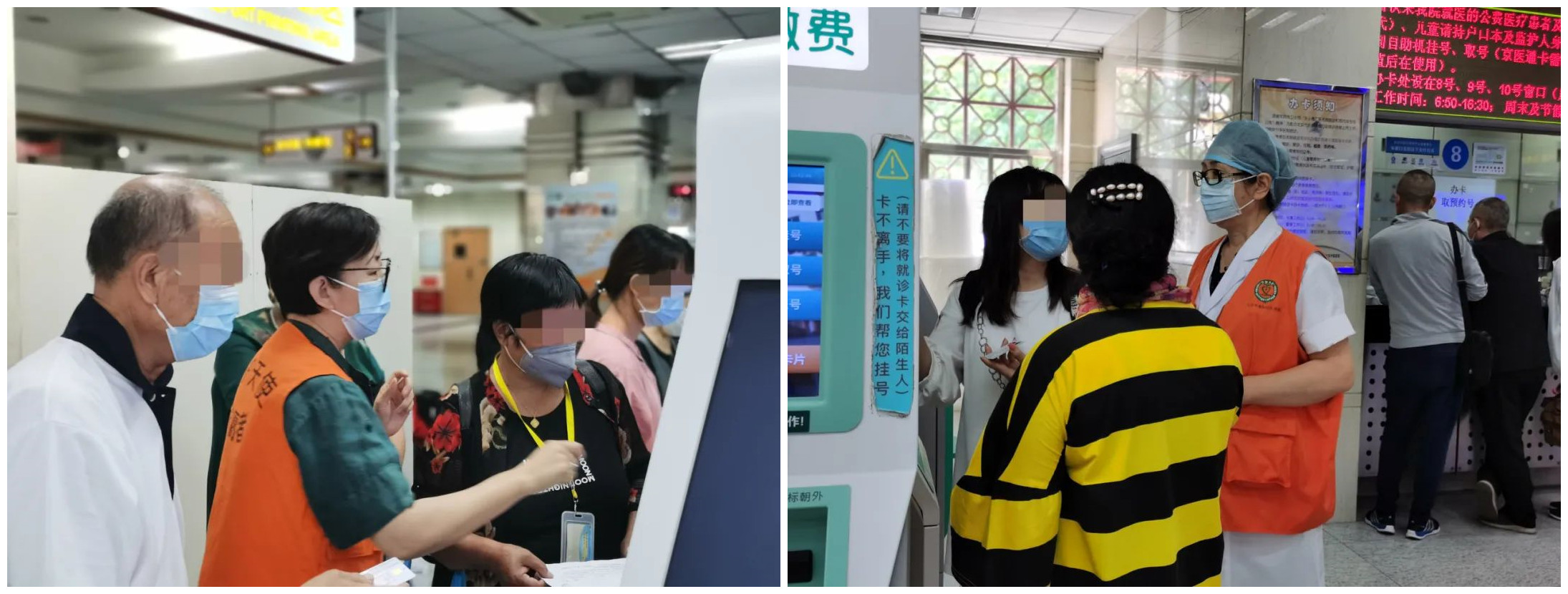 我院老党员先锋队自2015年成立以来,已在我院门诊大厅志愿服务近6年的时间了。他们虚心学习自动挂号机使用、院前急救、医改政策等。克服各种困难,无论春夏秋冬,风雨无阻,始终坚守在门诊一线,热情地为患者提供各种服务。他们对医院、对患者的无私奉献精神深深感动着医院每一位同仁。