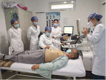 10月14日下午四点呼吸科病房里传来了阵阵热烈讨论的声音,原来是病房接收了一例少见的卧位低氧血症原因待查的老年患者,明确原因和诊断是当务之急。焦以庆主任带领科室团队马上组织讨论,同时立即申请超声影像科会诊,超声科刘雪梅主任立即为患者进行专门检测。