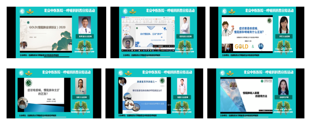 11月18日是“世界慢阻肺日”,我院呼吸科及四家医联体医院(怀柔中医院、顺义中医院、延庆中医院、平谷中医院)呼吸科联合举办“改善慢阻肺生活,无论何人与何地”大型线上视频科普活动。
