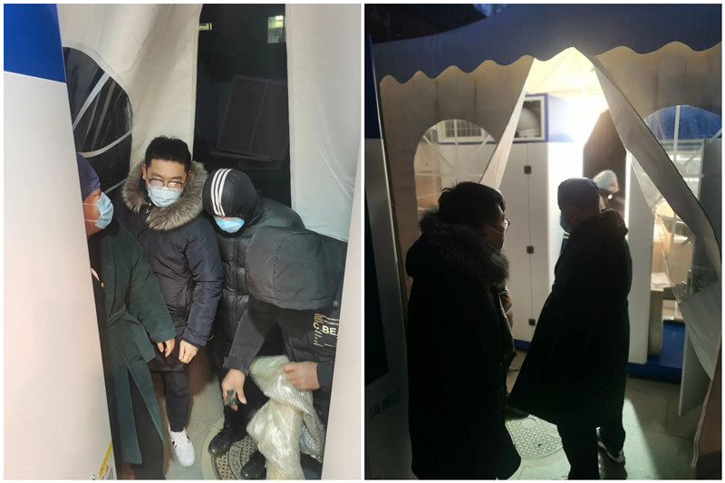 12月29日下午5点,新核酸采样室到达了医院。但当时天已擦黑,又赶上最强寒潮来袭,室外北风呼啸,同采样室一起到达的只有物流人员,没有厂家的设备安装人员,外挂空调机更是要2天后才有人员来装,如何让设备第二天一早就投入使用?