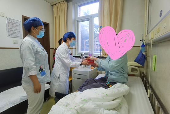 12月24日,最低零下11度,最高零下2度。我院肿瘤科的病房里,却暖意融融,因为关爱,这个冬日尤其温暖,医护人员在给住院患者们送上平安的祝福!连续11年,每一个平安夜都会有医护人员亲手包装的“平安果”送到患者的手中,只为把美好的祝愿送给正在经历病痛的患者们。