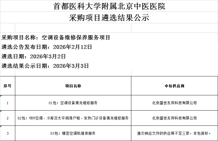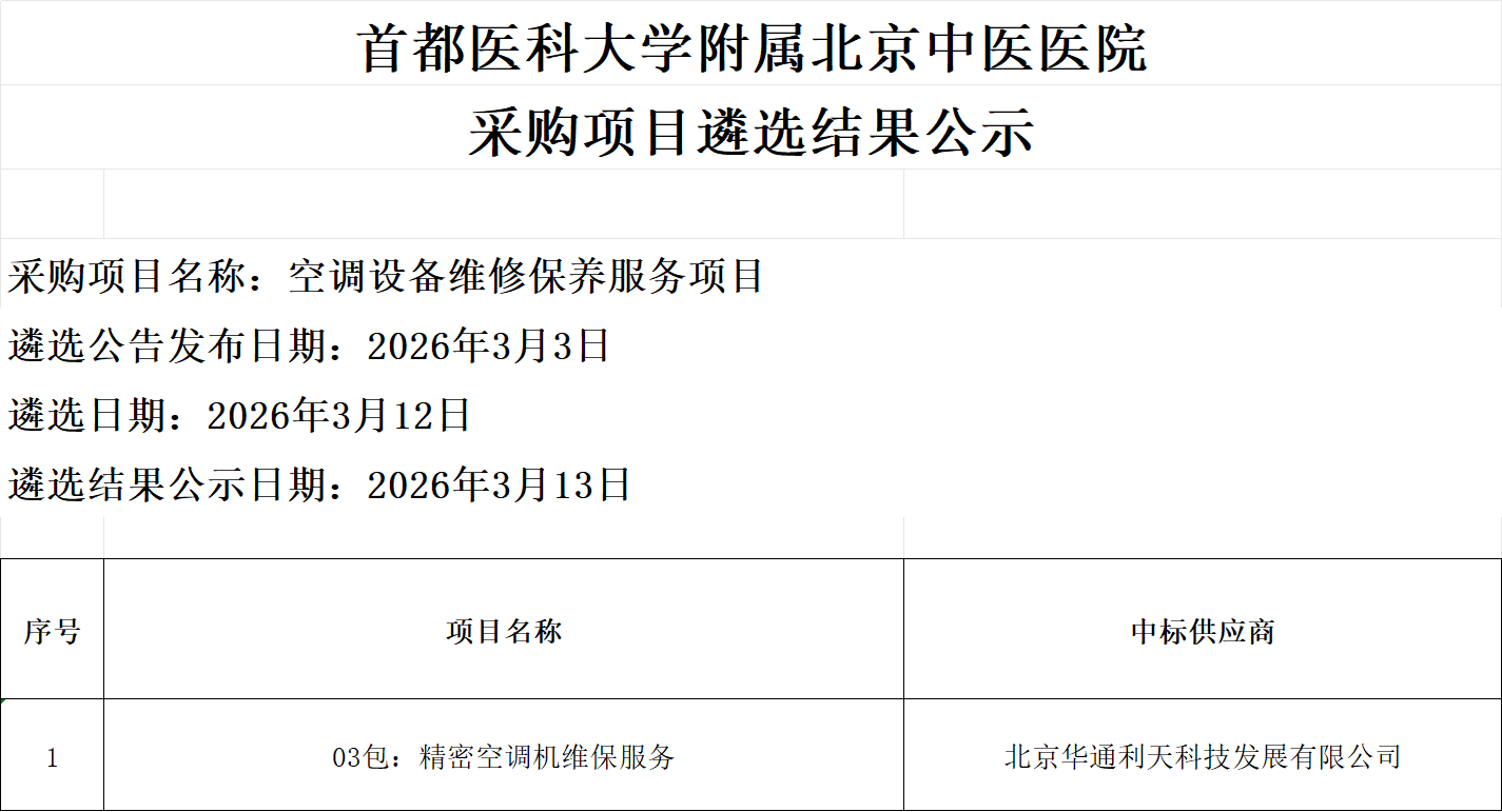 2. 本项目遴选公告、遴选结果等信息将在首都医科大学附属北京中医医院官方网站发布,请供应商自行关注