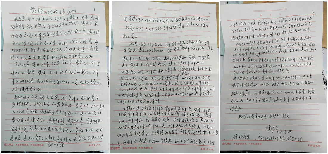 我院101岁的国家级名老中医陈彤云在收看专题报告会后,感受颇多,满满三页的内容表达了一位老党员的拳拳之心。