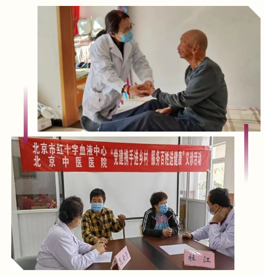 近日,北京中医医院临四党支部受北京市红十字血液中心党委之邀,在北京市中医管理局和医院党委的大力支持下,到延庆区大庄科乡为血液中心派驻第一书记的香屯村和我院派驻第一书记的东太平庄村居民进行高血压、糖尿病等疾病筛查和健康咨询。