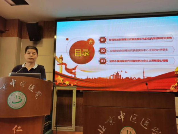 6月21日,医研、教育、下属经营机构党支部邀请院领导徐春军讲授《坚持不懈用党的创新理论武装头脑》主题教育党课。党课内容从“加强党的创新理论武装是我们党的优良传统和政治优势”、“加强党的创新理论武装是实现中心任务的必然要求”、“坚持不懈用新时代中国特色社会主义思想凝心铸魂”三个部分进行阐述。