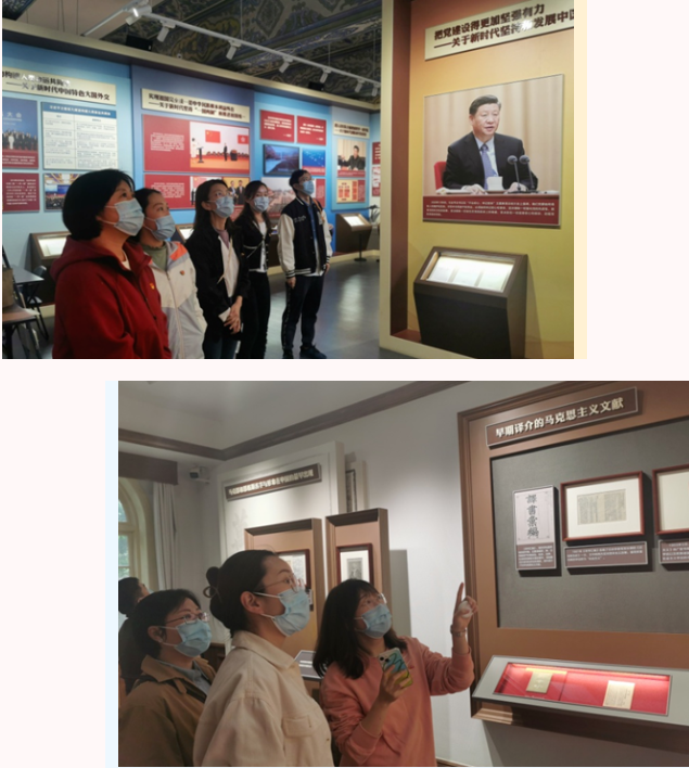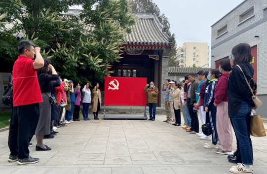 中法大学是中国共产党早期的活动地之一,在中西合璧建筑风格的教学楼前,全体党员面对党旗重温入党誓词,并满怀崇敬与热情参观了“马克思主义在中国早期传播”和“马克思主义中国化的光辉历程”两个专题展览,深入了解马克思主义中国化的发展历程。