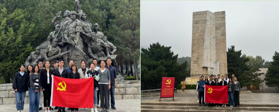 会议结束后,党员们共同参观了延庆区平北抗日烈士纪念园。初秋的延庆已经略带寒意,苍翠的松林间雾气萦绕,仿佛在诉说着一个个革命先辈英勇奋战的感人故事。平北抗日烈士纪念园内松林低吟、翠柏葱郁,在瞻仰大厅墙上,铿锵有力的文字记录着烈士们壮烈短暂、令人敬仰的一生。大家追忆斗争时期的峥嵘岁月,接受共产党精神的洗礼。