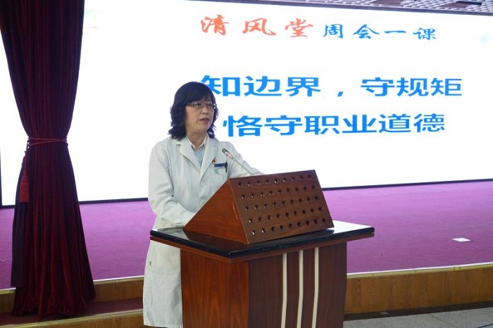 4月23日,为进一步加强廉政教育工作,强化党员干部职工纪律意识、规矩意识和廉洁意识,院纪委开展“清风堂周会一课”活动。院领导、中层干部、临床护士长、各党支部纪检委员、团支部纪检委员、重点岗位工作人员等百余人集中观看了由市纪委、市监委制作的警示教育片《变质的人生信条——张慧光案警示录》。
