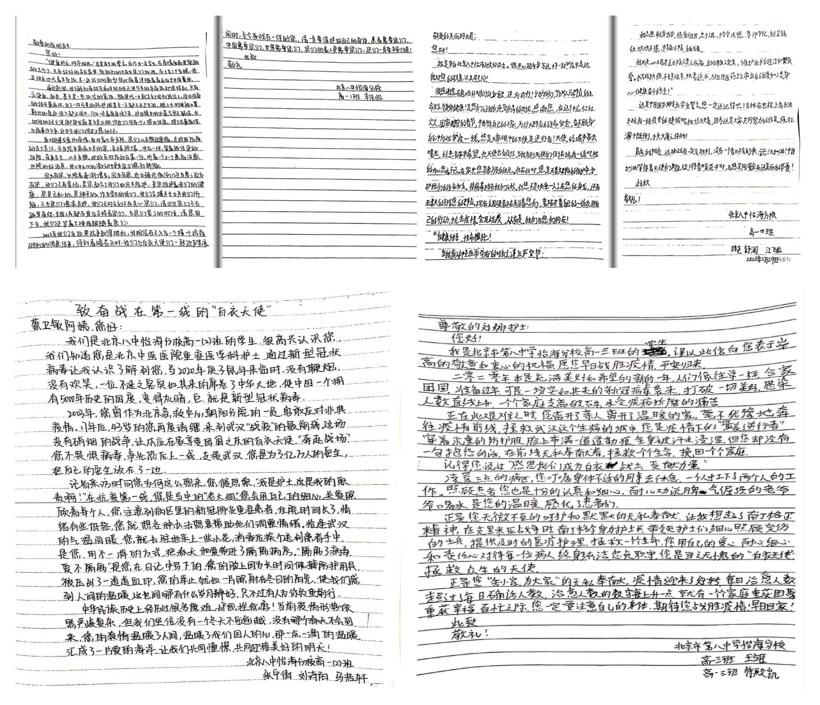 近日,我院党委办公室收到一个厚厚的信封,里面有11封信,是北京八中怡海分校的同学们写给党委和我院10名援鄂医疗队队员的。