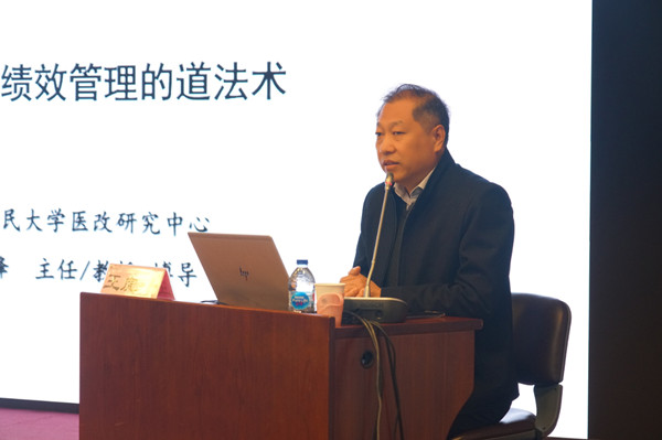 中国人民大学医改研究中心主任、公共管理学院教授王虎峰,以《公立医院绩效管理的道法术》为题,为大家介绍了绩效管理模式的演变,以及常用的绩效管理工具,结合公立医院当前发展实际,提出驱动型绩效和标化绩效等创新管理模式,为医院推进绩效改革工作启迪了新思路。