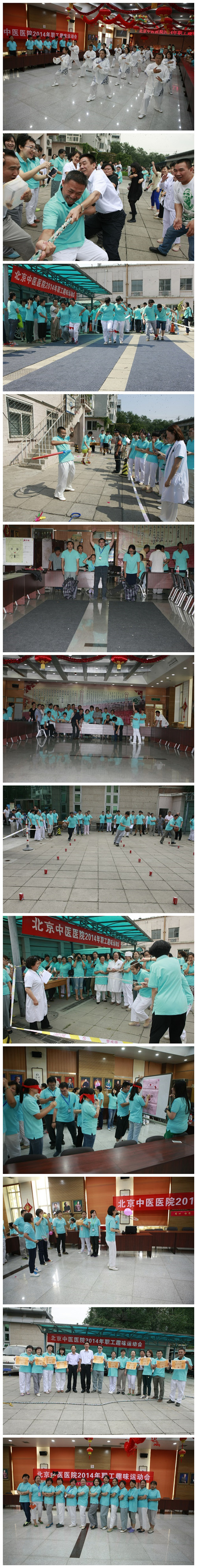 我院利用10日至12日三个午间工休时间展开趣味运动会,设超级贴贴贴、气球接力、编辫子、两人三足、滚铁环、铁人五项、袋鼠跳、带球障碍跑、拔河等9个比赛项目。报名700人,实际参与512人、986人次。根据十个分会实际参加人数,结合各分会参赛选手的比赛成绩,评选出:团体第一名——皮瘤研分会;团体第二名——医技分会;团体第三名——财务分会;最佳人气奖——机关分会;最佳协作奖——后勤分会;最具活力奖——临三分会;最具实力奖——药剂分会;最具勇气奖——临一分会;最具潜力奖——临二分会;最佳人品奖——门诊分会。