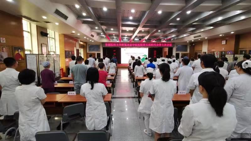 7月22日下午,北京中医医院第五届职代会第七次会议在多功能厅举行。院领导刘清泉、张金霞、李萍及职工代表共97人与会。张金霞主席主持会议。