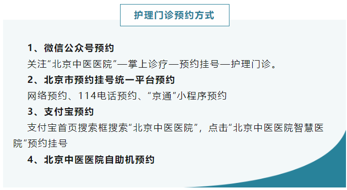 北京中医医院现有燕京系列护理门诊7个,分别为静疗维护门诊、腹透护理门诊、燕京疮疡护理门诊,燕京造口护理门诊,燕京乳腺护理门诊,燕京眼科护理门诊,燕京皮科护理门诊,开展具有专科特色的中医护理技术操作,总门诊量超16万余人次。