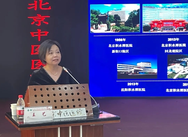 北京市优秀名中医、皮肤科曲剑华主任医师做了题为《损美性皮肤病中医特色外治疗法》的授课,分享了燕京皮外科特色外治疗法的组方药材、治疗要点、注意事项、适应症与禁忌症,并介绍了我院陈彤云系列化妆品创新科技成果转化取得的成绩。