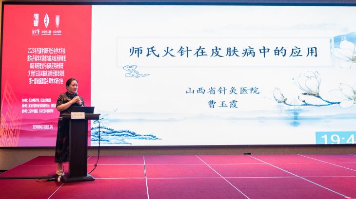 山西省针灸医院针灸三科主任曹玉霞介绍了师氏火针在皮肤病中的应用。