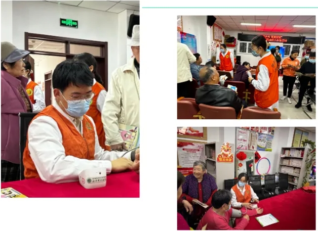 活动当天,营养科青年文明号号长袁怿为村民们带来题为“饮食营养与健康”的科普讲座,深入浅出地讲解了中国居民膳食宝塔、一般老人及高龄老人膳食指南,介绍了中医营养食疗并提供了简单易操作的食疗方。讲座结束后,机关财务团支部书记刘惠文、学生团总支郭子轩、宋思琦、张萌、曾宇涵、林颖、王文洁、查舒颖为村民们测血压、发放针对高血压、冠心病、高脂血症、糖尿病等7种疾病患者的饮食营养健康科普宣教材料并为村民详细讲解科普宣教材料中的内容。