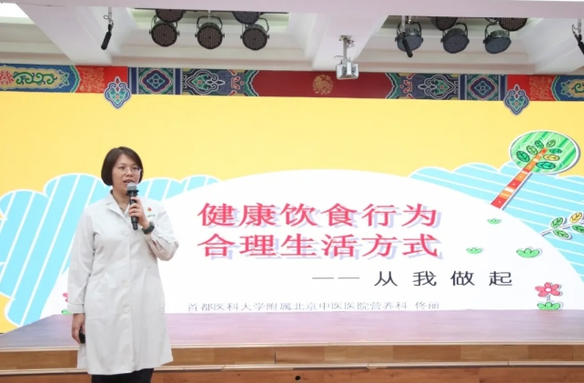 佟丽同时介绍了健康的饮食行为以及合理的生活方式。健康的饮食行为包括三点:一要主动参与食物选择和制作,提高营养素养;二要吃好早餐,合理选择零食,培养健康饮食行为;三要天天喝奶,足量饮水,不喝含糖饮料,禁止饮酒。生活中要注意多户外活动,少视屏时间,每天应累计至少60分钟中高强度的身体活动;需定期监测体格发育,保持体重适宜增长,预防营养不足和超重肥胖。