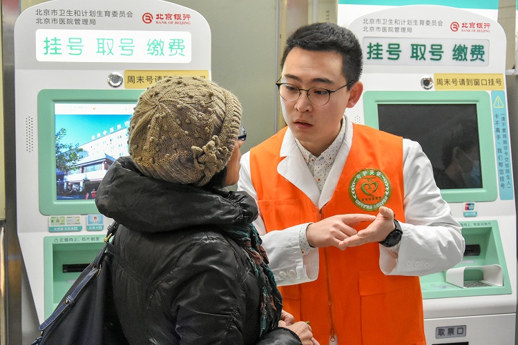 2017年伊始,为缓解门诊京医通自助挂号区导医工作压力,宽街的小郎中们积极响应院领导号召,自愿报名参加门诊导医志愿服务。团委以支部为单位,组织志愿者参加岗前培训,并由志愿者招募办公室统一排班,顺序上岗。为了不影响临床工作,很多青年志愿者都是利用上下夜班前后或者倒休时间进行服务,他们不辞辛苦,在帮助他人、传播爱心和精神文明的同时,也净化了自己的心灵。
