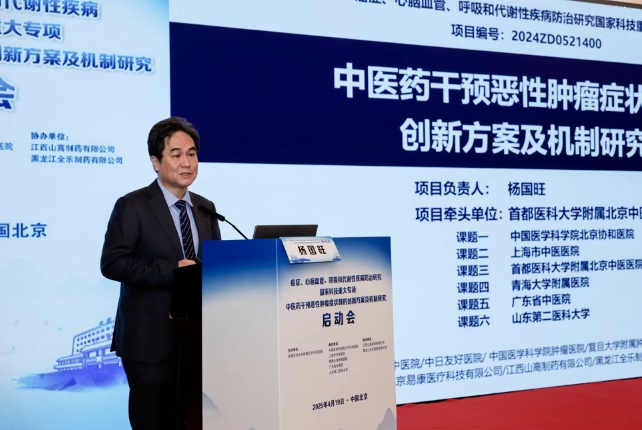 4月19日,由首都医科大学附属北京中医医院承担的国家科技重大专项“中医药干预恶性肿瘤症状群的创新方案及机制研究”项目启动会在北京亮马河会议中心举行。该项目由北京中医医院作为牵头单位,北京中医医院副院长杨国旺担任项目负责人。作为国家卫健委“癌症、心脑血管、呼吸和代谢性疾病”四大慢病防治研究的重要组成部分,该项目将着力解决恶性肿瘤症状群诊疗中的关键科学问题,推动肿瘤患者症状管理进入精准化、标准化新阶段。