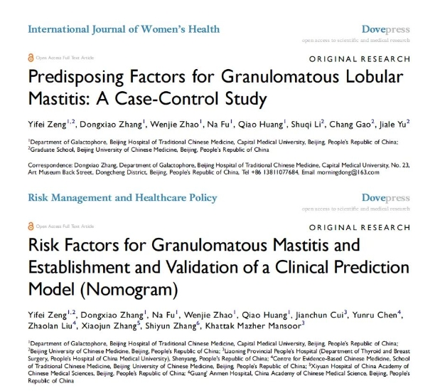 自2017年起,团队积极开展肉芽肿性乳腺炎发病诱因的临床研究,严格采用病例对照研究的规范设计,选取500余例肉芽肿性乳腺炎患者为研究对象,通过分析比较,明确了多项肉芽肿性乳腺炎的直接发病因素及相关因素,证实了乳头内陷、高泌乳素水平等因素在其发病中的重要作用。该项研究为截至目前国际上最大样本量的单中心肉芽肿性乳腺炎临床病例对照研究,在肉芽肿性乳腺炎病因学研究中取得了突破性研究进展。